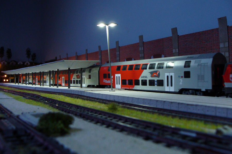 Um die richtige Bahnsteighöhe und -breite auszuloten, habe ich ein Stück des Bahnsteigs ausgedruckt. Die Größe passt und nun muss ich den passenden Graukarton für das Lasern besorgen.