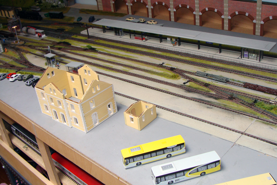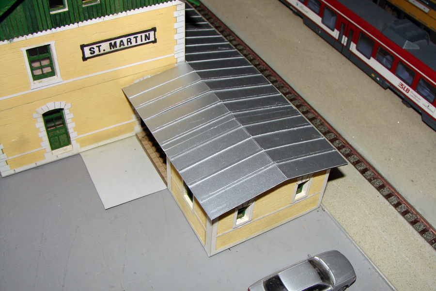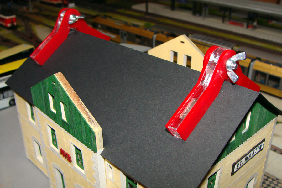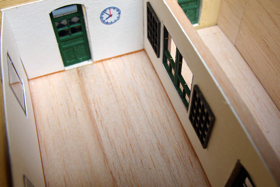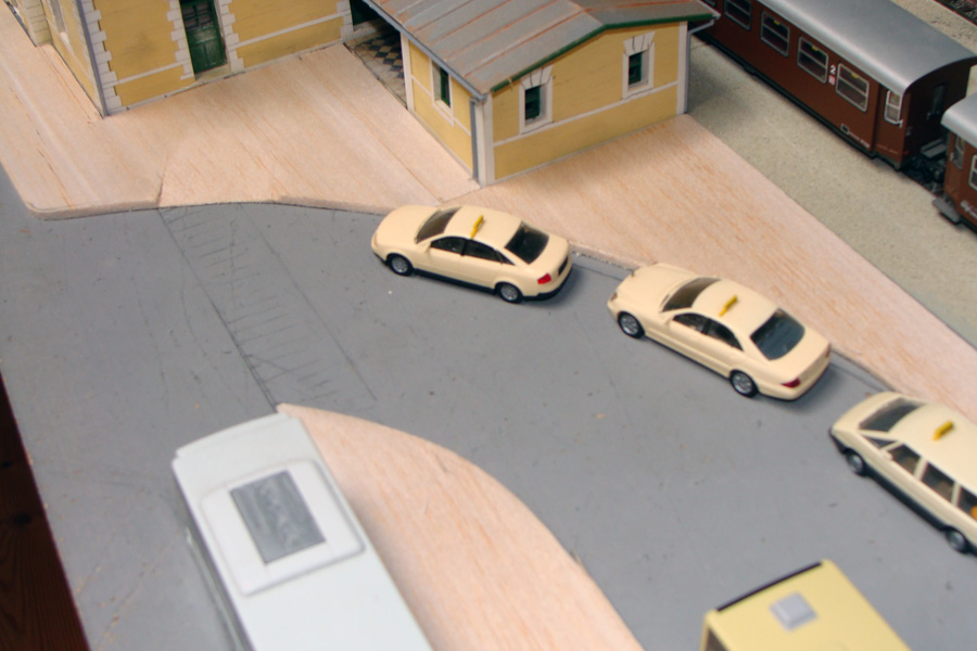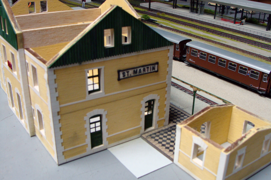 Aus Balsaholz wurden die Fassadenteile geschnitten. Die weißen Teile wurden aus Papier gelasert.