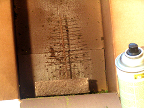 Ihre endgültige Farbe erhalten Stamm und Äste mit mattem dunkelbraunen Lackspray. Billiger, aber zeitraubender ist das Bemalen mit Dispersion. das Ergebnis bleibt gleich.