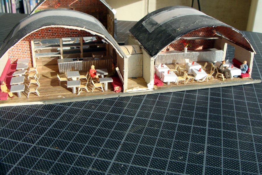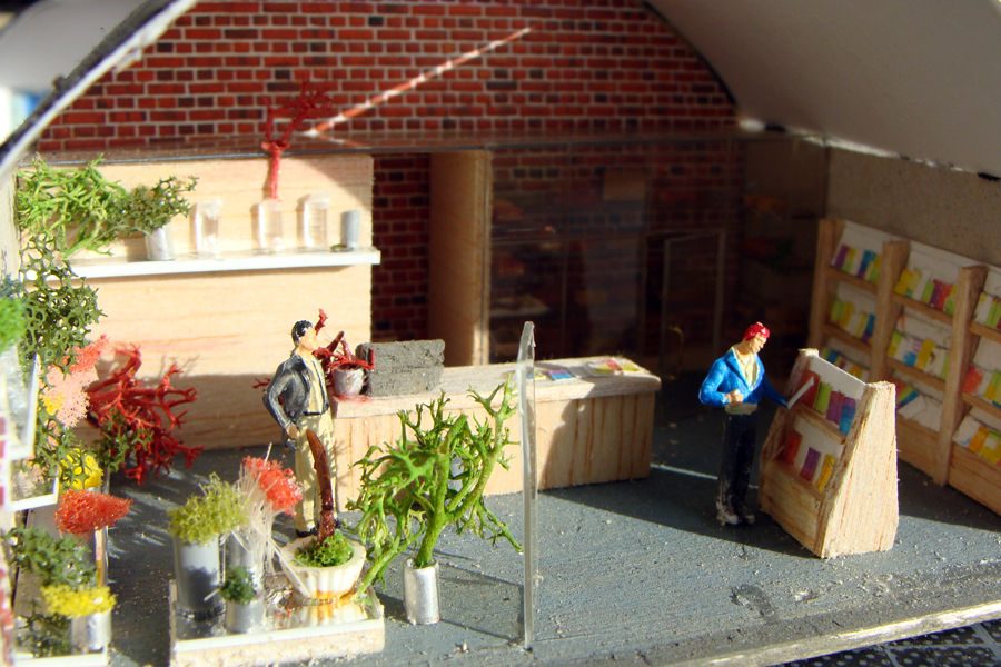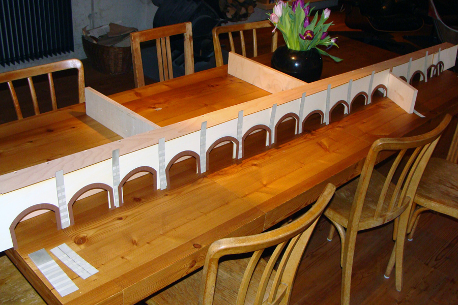Auf meiner alten H0-Anlage gab es ein Viadukt, das ich den Wiener Stadbahnviadukten nachgebaut hatte. In die Viaduktbögen hatte ich diverse Geschäfte eingebaut, so diese Blumenladen-Trafik-Kombination. In das Viadukt der Schmalspurbahn auf meiner aktuellen Anlage möchte ich diese Geschäfte wieder einbauen.