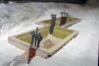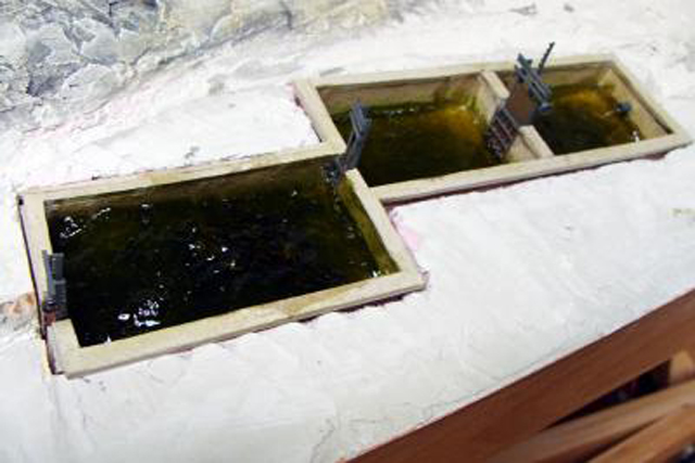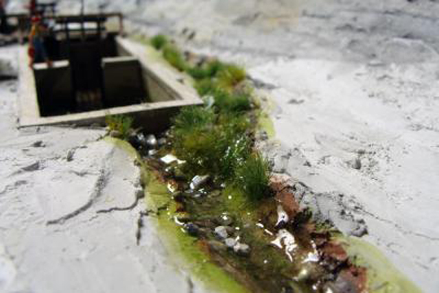 Die Betonbecken der Forellenzucht entstehen aus Graukarton.