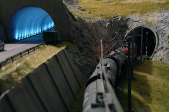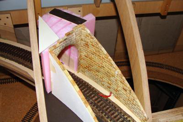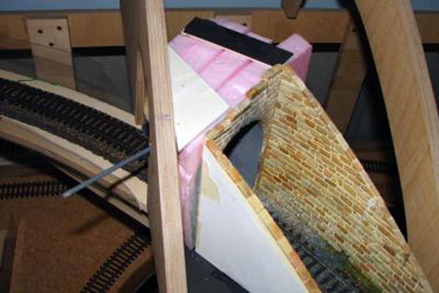 Jetzt beginnt der Landschaftsbau auf dem rechten Anlagenschenkel. Davor gilt es, noch ein Tunnelportal für die Hauptstrecke zu bauen. Zuerst probiere ich wieder ein Pappe-Modell.