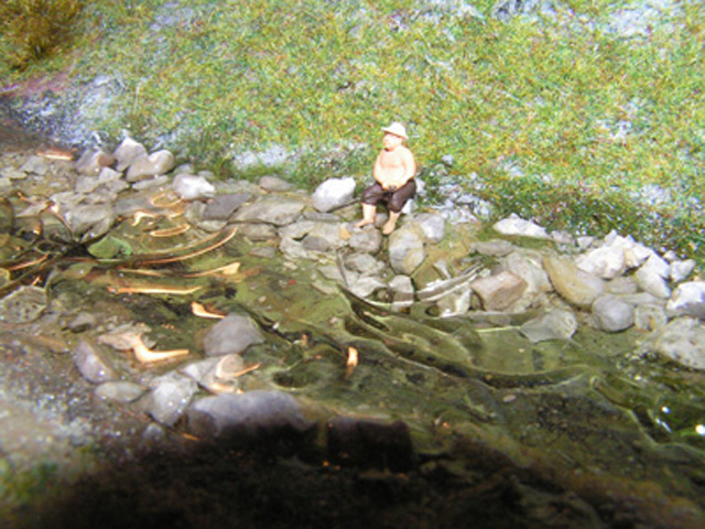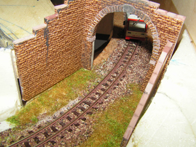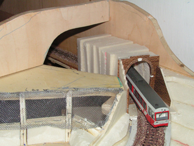fertig patiniert. Die Tunnelröhre aus Styrodurelementen wurde mit